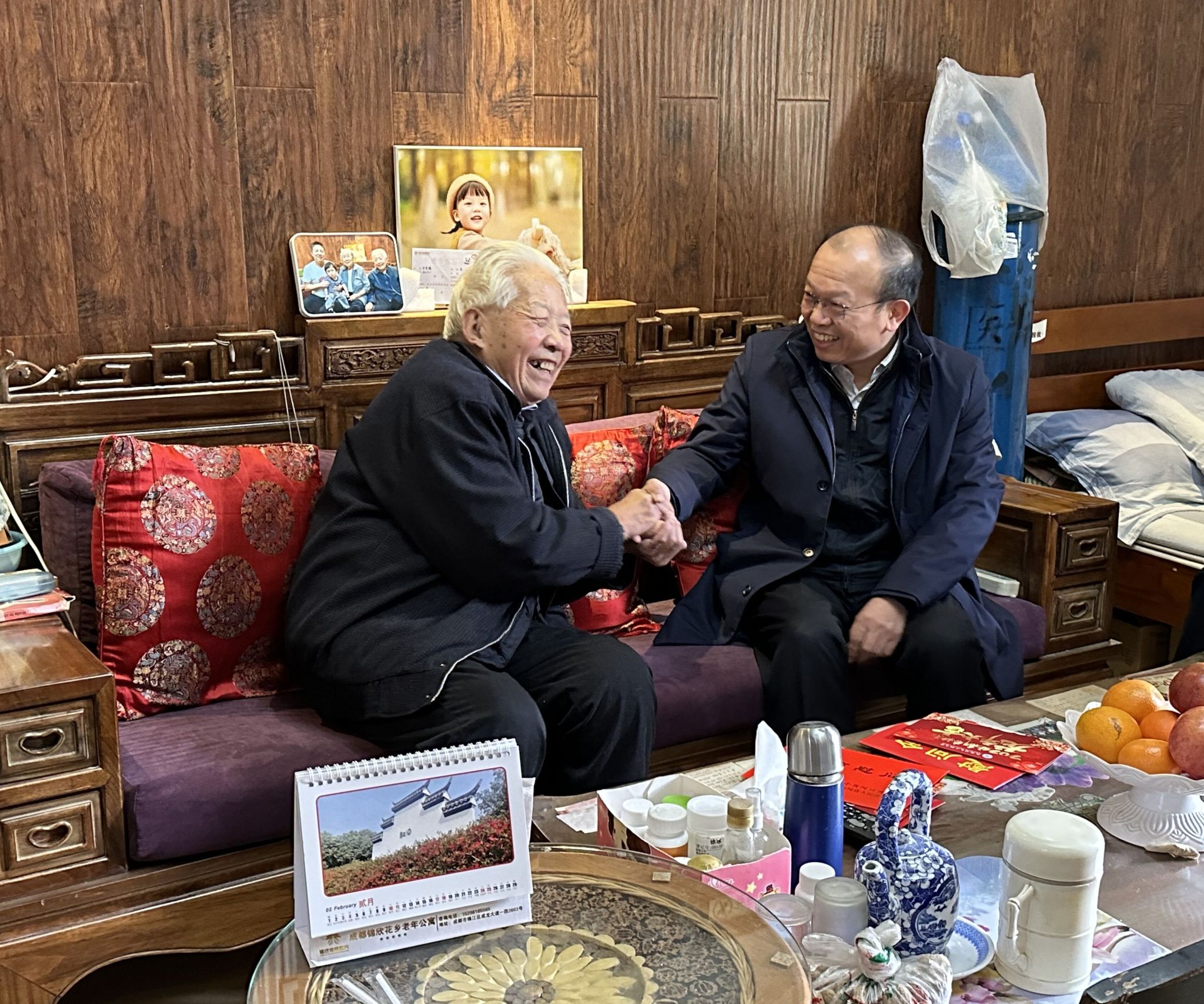 1月25日,在新春佳节即将来临之际,学校党委书记沈火明、校长何建新分别走访慰问学校离退休老同志,送上诚挚问候和新春祝福。